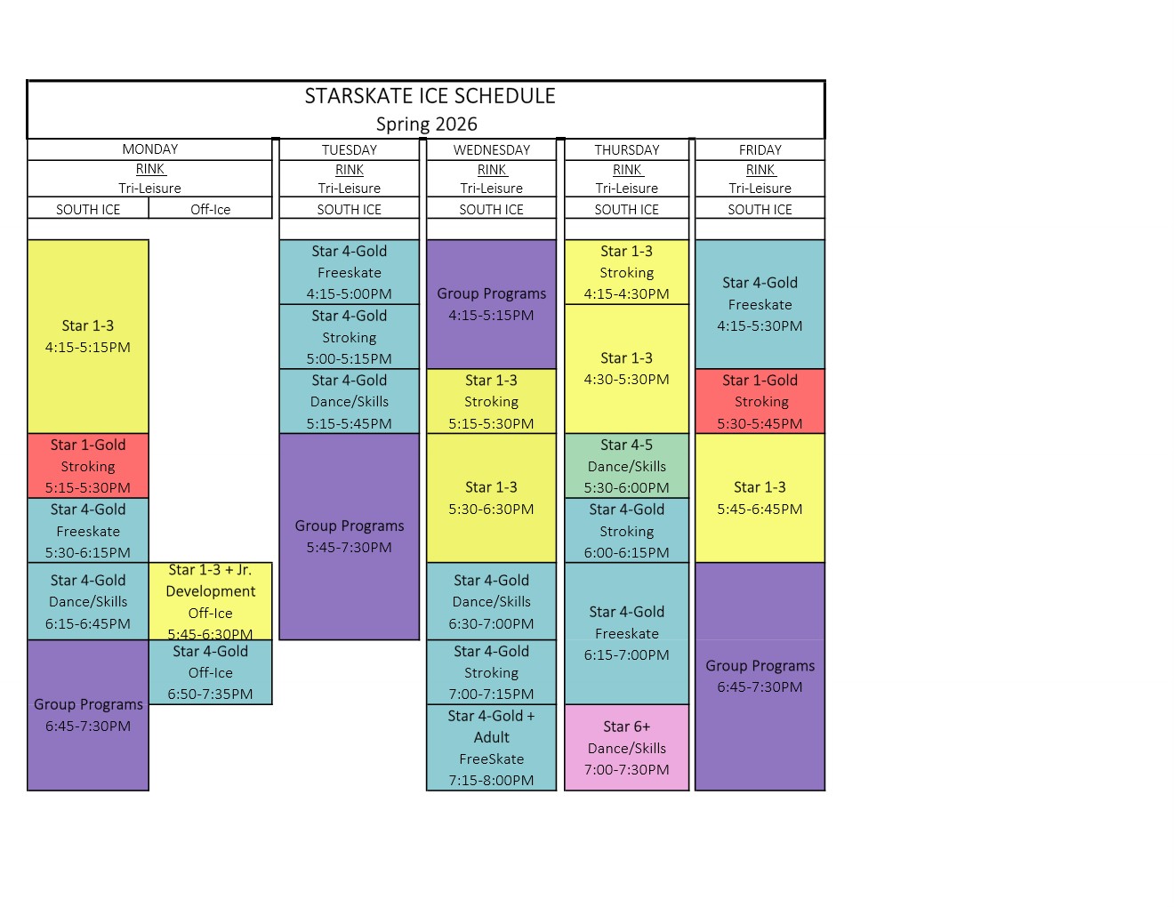 Dates for Special Ice Schedule